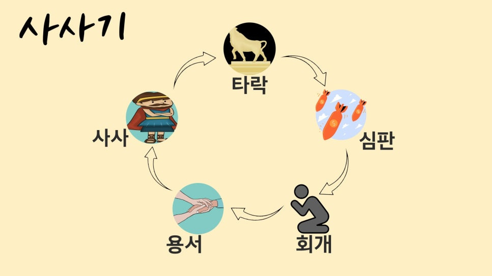 그들은 각자의 소견대로 살았고, 그 결과 혼란의 시기가 왔으니 바로 사사시대입니다.