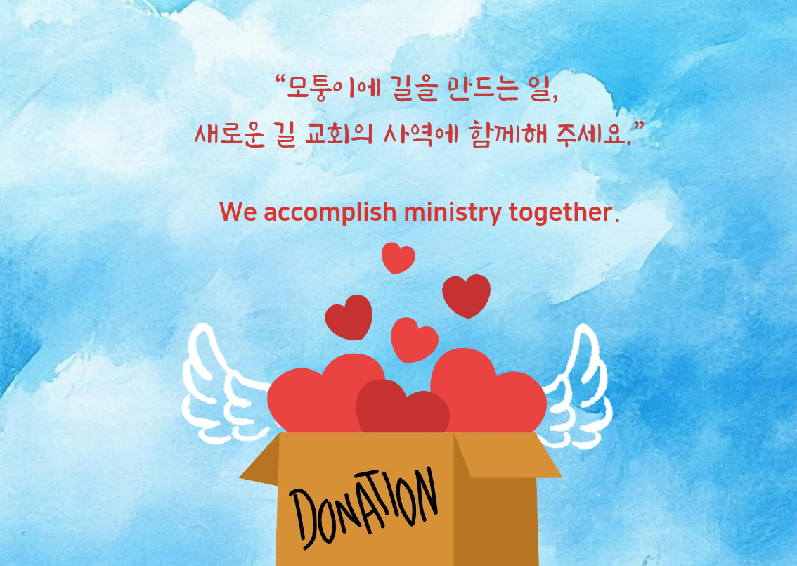 새로운 길 교회와 어려운 탈북민 교회의 전도 사역에 소중히 쓰입니다.